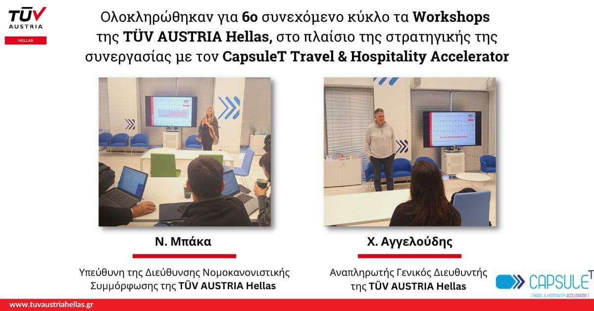 Πραγματοποιήθηκαν για 6ο συνεχόμενο κύκλο τα workshops της TÜV AUSTRIA Hellas, στο πλαίσιο της στρατηγικής της συνεργασίας με τον CapsuleT Travel & Hospitality Accelerator του Ξενοδοχειακού Επιμελητηρίου Ελλάδας (ΞΕΕ).