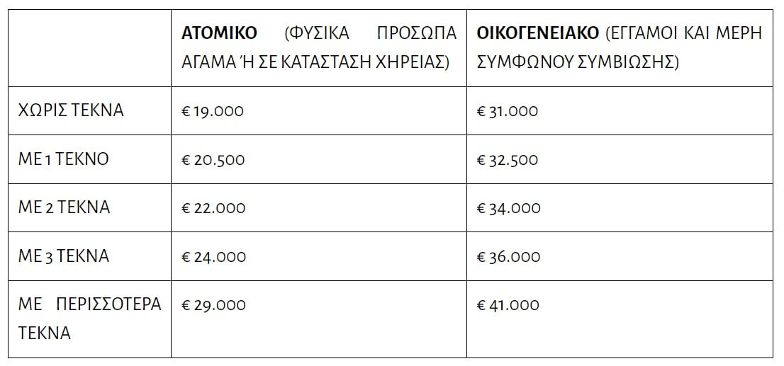 Αίτηση για το Πρόγραμμα θα μπορούν να υποβάλουν πολίτες που πληρούν τα κάτωθι εισοδηματικά κριτήρια:
