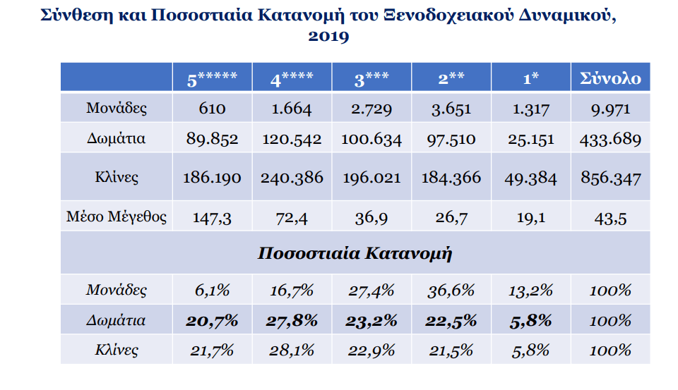 Το ξενοδοχειακό δυναμικό της Ελλάδας το 2019