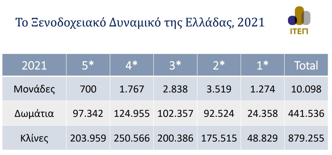 Το 2021 ο αριθμός των ξενοδοχείων ανάλογα με την κατηγορία τους ήταν: