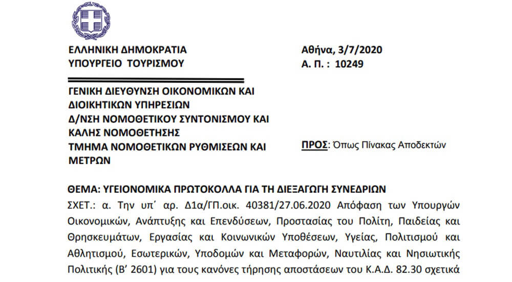 Διαβάστε ΕΔΩ τα υγειονομικά πρωτόκολλα για τη διεξαγωγή συνεδρίων.
