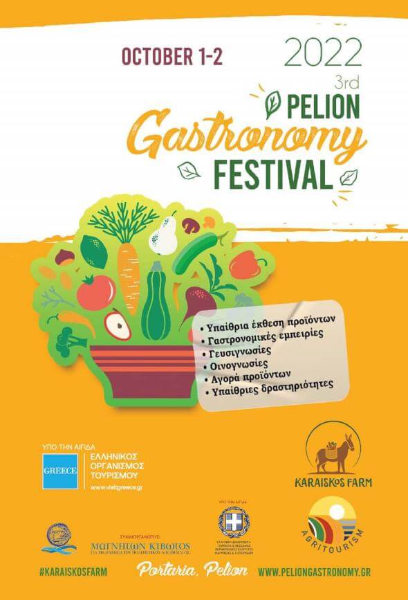 Με στόχο την ανάδειξη και προώθηση της πηλιορείτικης γαστρονομίας και των τοπικών παραγωγών, διοργανώνεται το Σαββατοκύριακο 1 και 2 Οκτωβρίου στην περιοχή της Πορταριάς το 3ο Γαστρονομικό Φεστιβάλ Πηλίου.