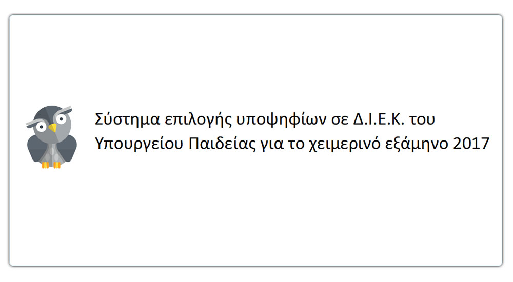 Τις αιτήσεις τους ηλεκτρονικά μπορούν να υποβάλλουν έως και την Παρασκευή 01/09/2017 και ώρα 10:00 οι υποψήφιοι που επιθυμούν να εγγραφούν, μετά από διαδικασία επιλογής, στο Α’ εξάμηνο ειδικοτήτων των Δημοσίων Ινστιτούτων Επαγγελματικής Κατάρτισης (Δ.ΙΕΚ) του υπουργείου Παιδείας.