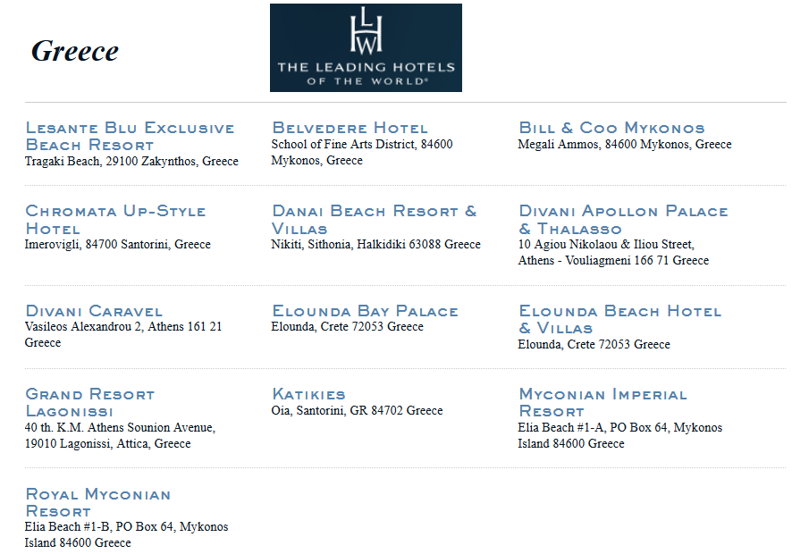 Λίστα ξενοδοχείων: www.lhw.com