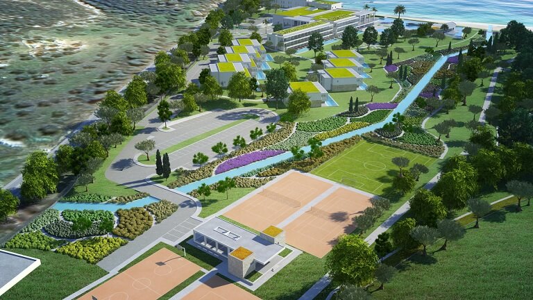 Το συγκρότημα, το οποίο αναπτύσσεται σε έκταση 65 στρεμμάτων, θα διαθέτει τρία εστιατόρια και δύο bars, πισίνες, Κέντρο Ευεξίας & SPA από τα μεγαλύτερα της ευρύτερης περιοχής με θερμαινόμενη πισίνα, καθώς επίσης θα περιλαμβάνει και γυμναστήριο, ποικιλία αθλητικών εγκαταστάσεων όπως γήπεδα tennis, padel, basket, mini football, beach volley, καθώς και mini club για τα παιδιά.